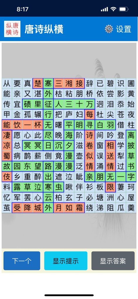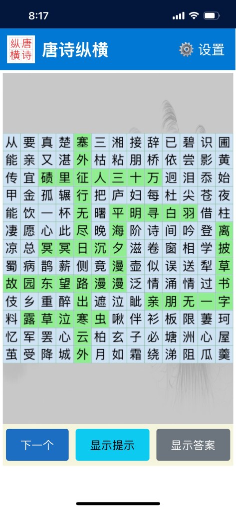 12年前,我开发了一个基于唐诗的找字游戏,发布到安卓和苹果的App Store。由于长时间没有更新,已经被下架。最近,我用PWA(Progressive Web App)技术从新开发了唐诗纵横,发布到Azure。网址:https://jolly-desert-07209ba1e.2.azurestaticapps.net/。